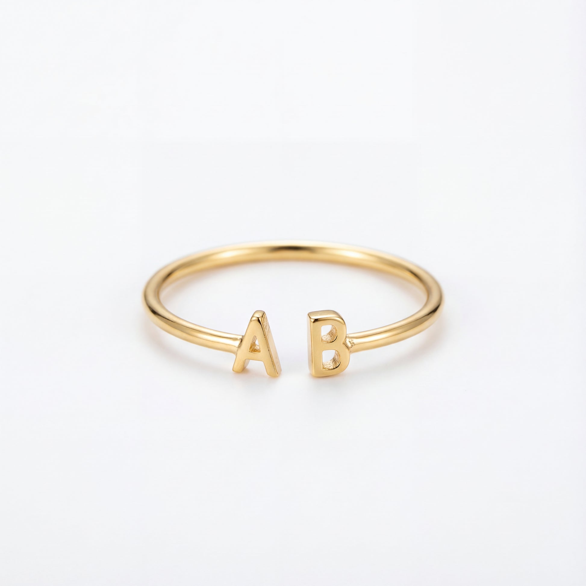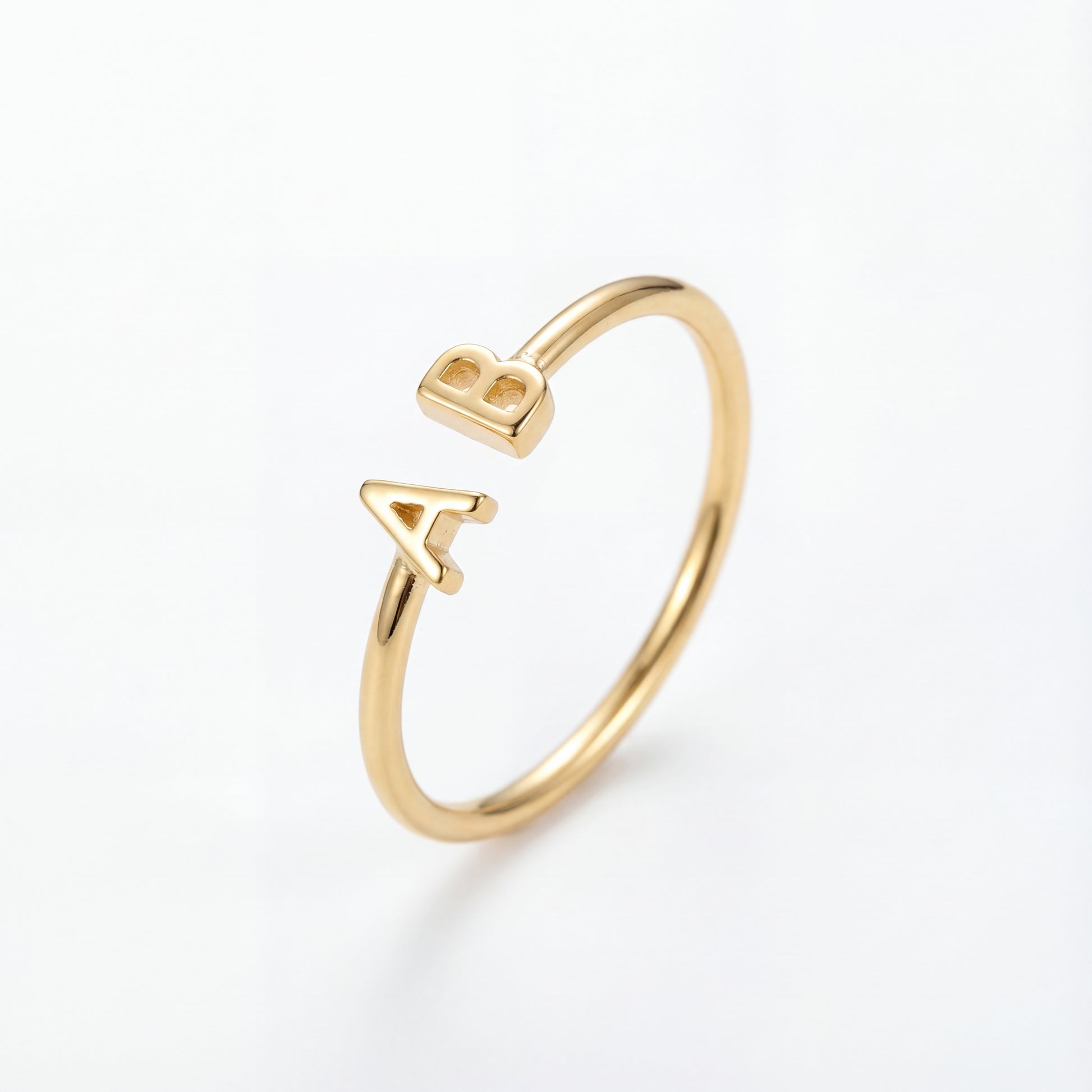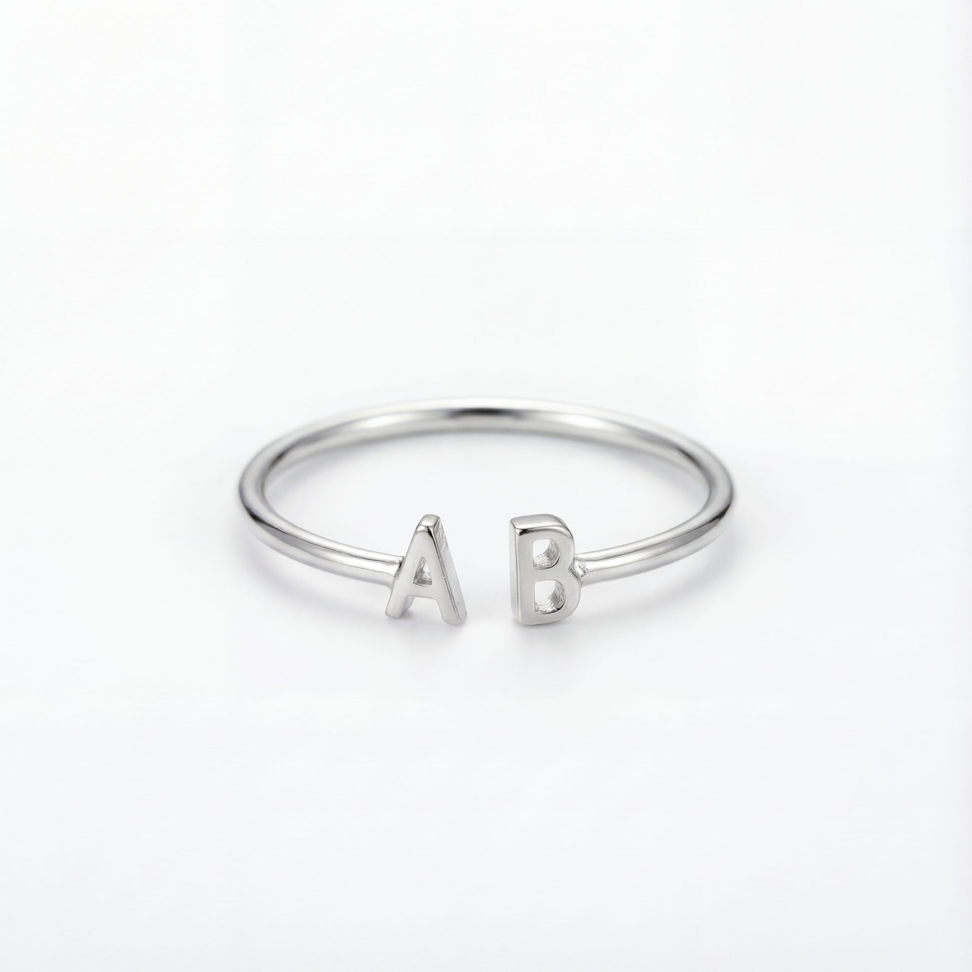 Ten elegancki pierścionek typu open prezentuje dwa motywy inicjałów na przeciwległych końcach, tworząc spersonalizowany element wyrazu. Gładkie, szczotkowane wykończenie dodaje nowoczesnej elegancji.