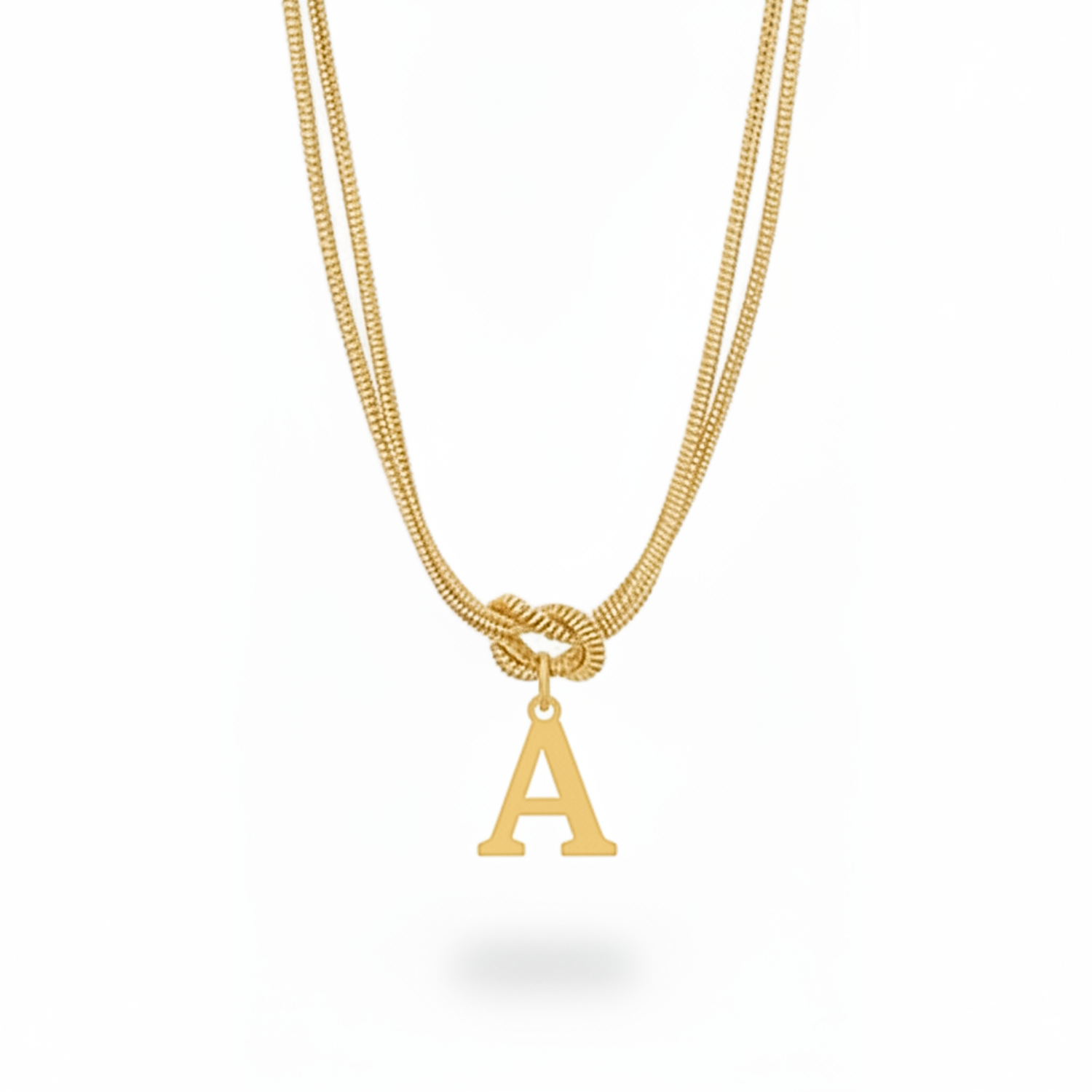 Wyrafinowany naszyjnik z podwójnym łańcuszkiem, z elegancką zawieszką w kształcie inicjału zawieszoną na wyrafinowanym supełku. Polerowany charms w kształcie litery dodaje osobistego charakteru każdej stylizacji.