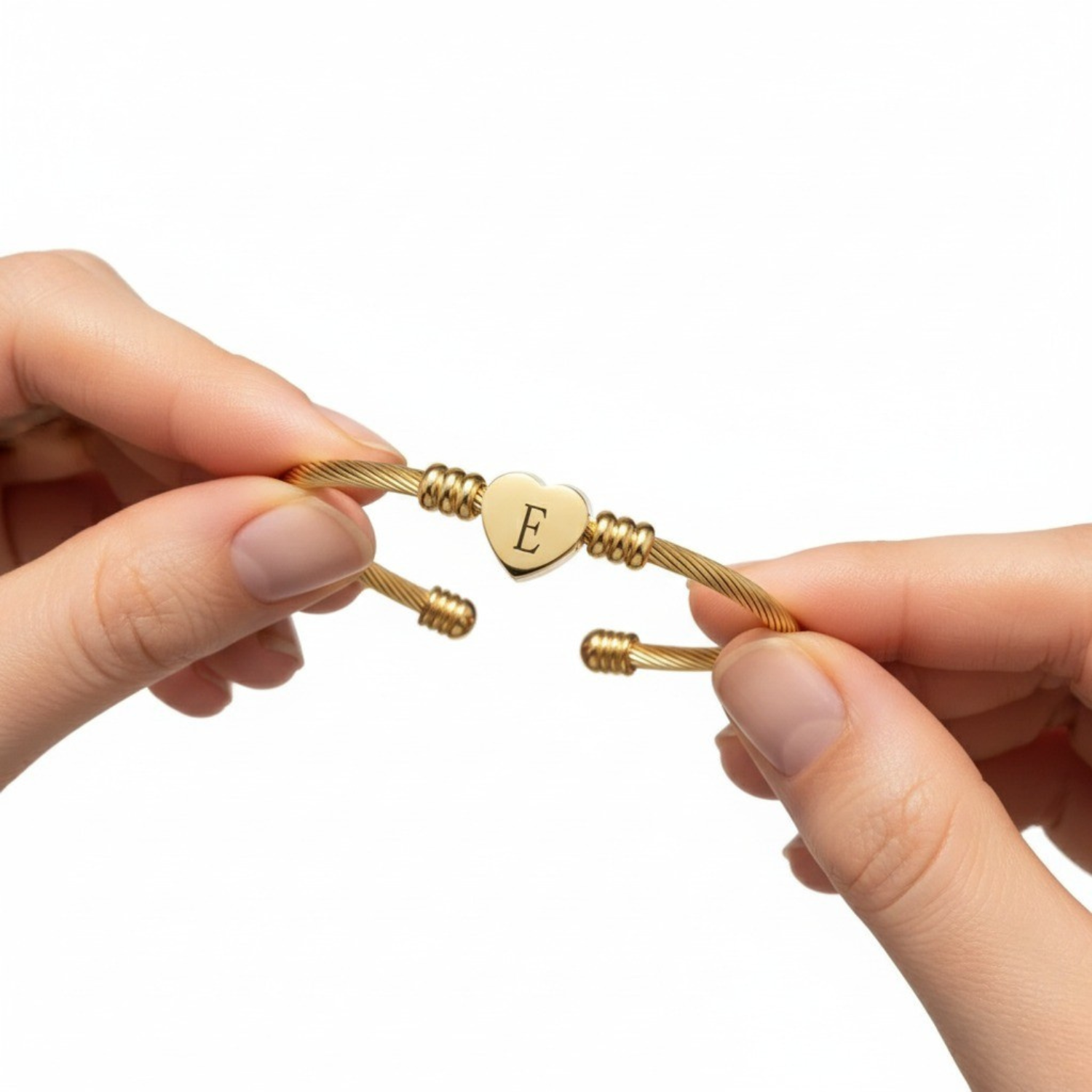 Wyraź swój styl z elegancją dzięki tej wyrafinowanej bransoletce z wygrawerowaną inicjałem na sercu ze stali nierdzewnej.