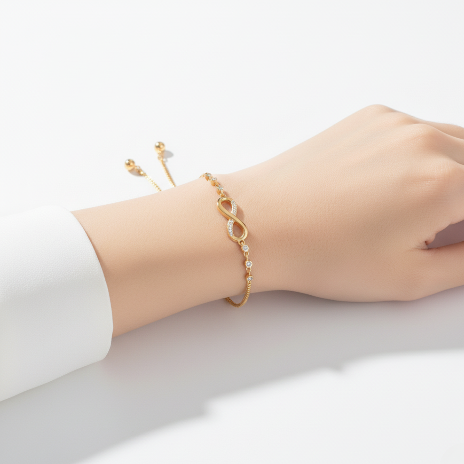 Minimalistyczna i elegancka, bransoletka "Infinity" robi wrażenie sama w sobie, ale można ją też łączyć z inną biżuterią, tworząc osobisty i harmonijny wygląd.