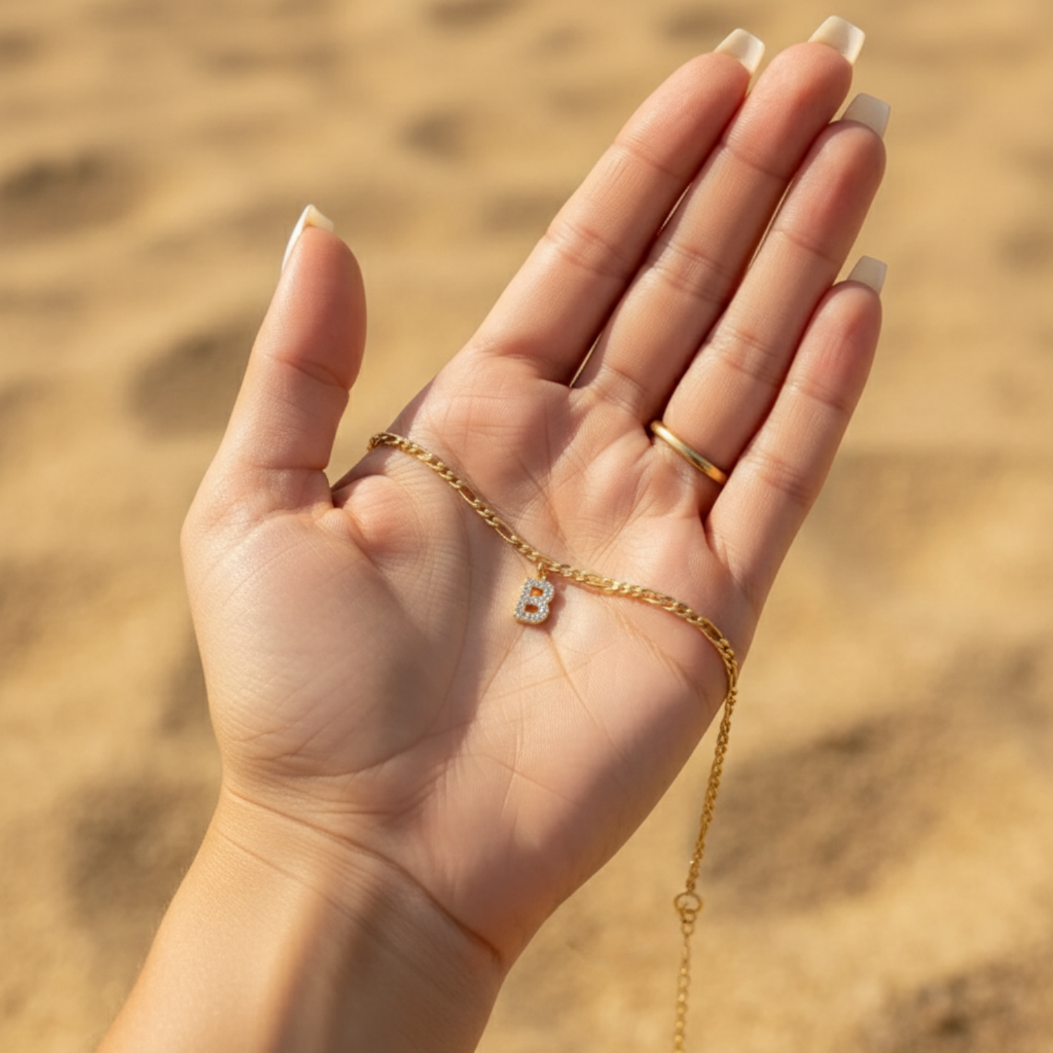 Dzięki delikatnemu wzornictwu i zawieszce z inicjałem ozdobionej małymi kamieniami cyrkonii, ten element wyróżnia się wyrafinowaniem i błyszczącym stylem. Każda ozdobiona inicjał reprezentuje szczególne połączenie, czy to imię, symbol uczucia, czy znaczącą literę.