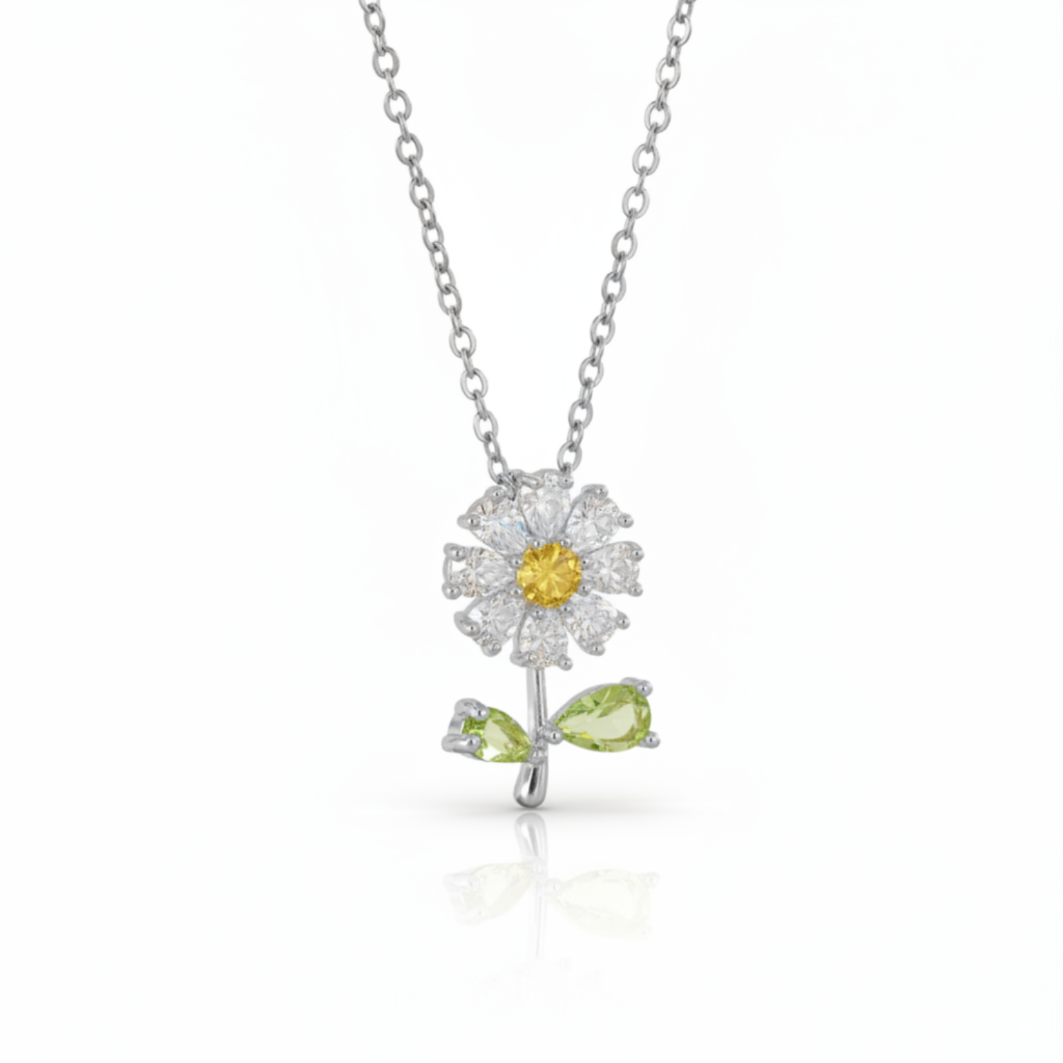 Delikatny, promienny i nieskończenie elegancki, naszyjnik Pure Bloom uchwyca ponadczasowe piękno kwitnącego kwiatu. Jego misternie wykonany wisiorek przedstawia stokrotkę z perłowymi płatkami, towarzyszą jej kryształowe liście o miękkich zielonych refleksach.